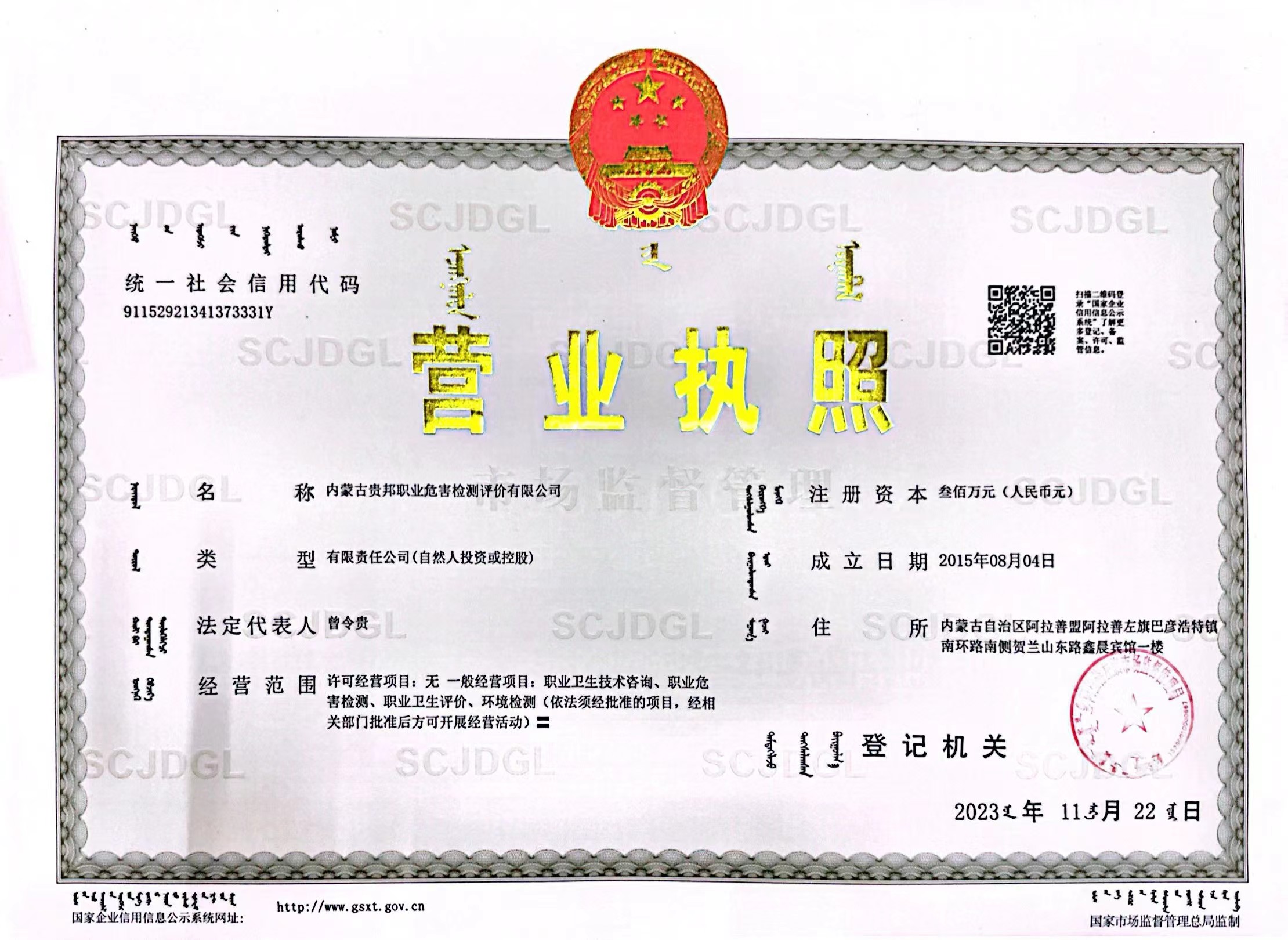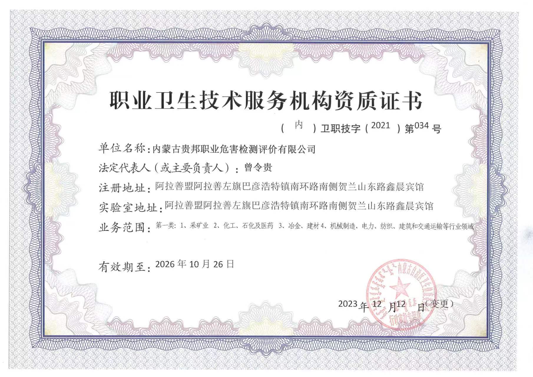 內(nèi)蒙古貴邦職業(yè)危害檢測(cè)評(píng)價(jià)有限公司(m.319j.com)版權(quán)所有 地址:阿拉善盟阿拉善左旗賀蘭山東路加氣站南側(cè)鑫晨賓館一樓 24小時(shí)熱線:18947252199 蒙ICP備:蒙ICP備21006705號(hào)-1 公安備案號(hào):50011802010212